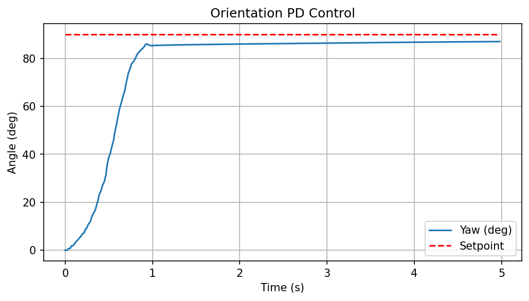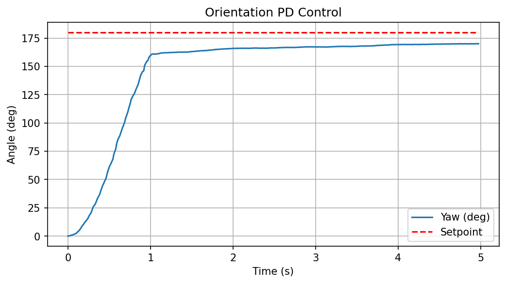 | 3.0 | 1.0 | Smooth approach, settles within 5 degrees |
